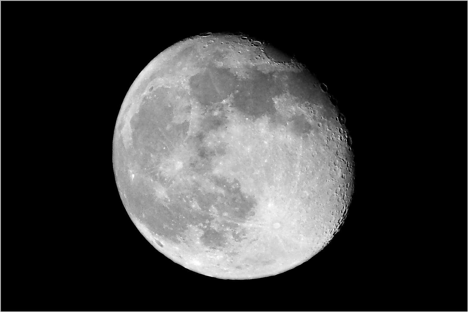 Aufnahmen mit einem 300er-Tele nehme ich immer im RAW-Modus auf und kopiere den Mond in ein schwarzes Bild mit den Abmessungen 1500x1000 Pixel. So wird der Mond bei einer 32-MP-Aufnahme mit einem 300er-Tele formatfüllend dargestellt.