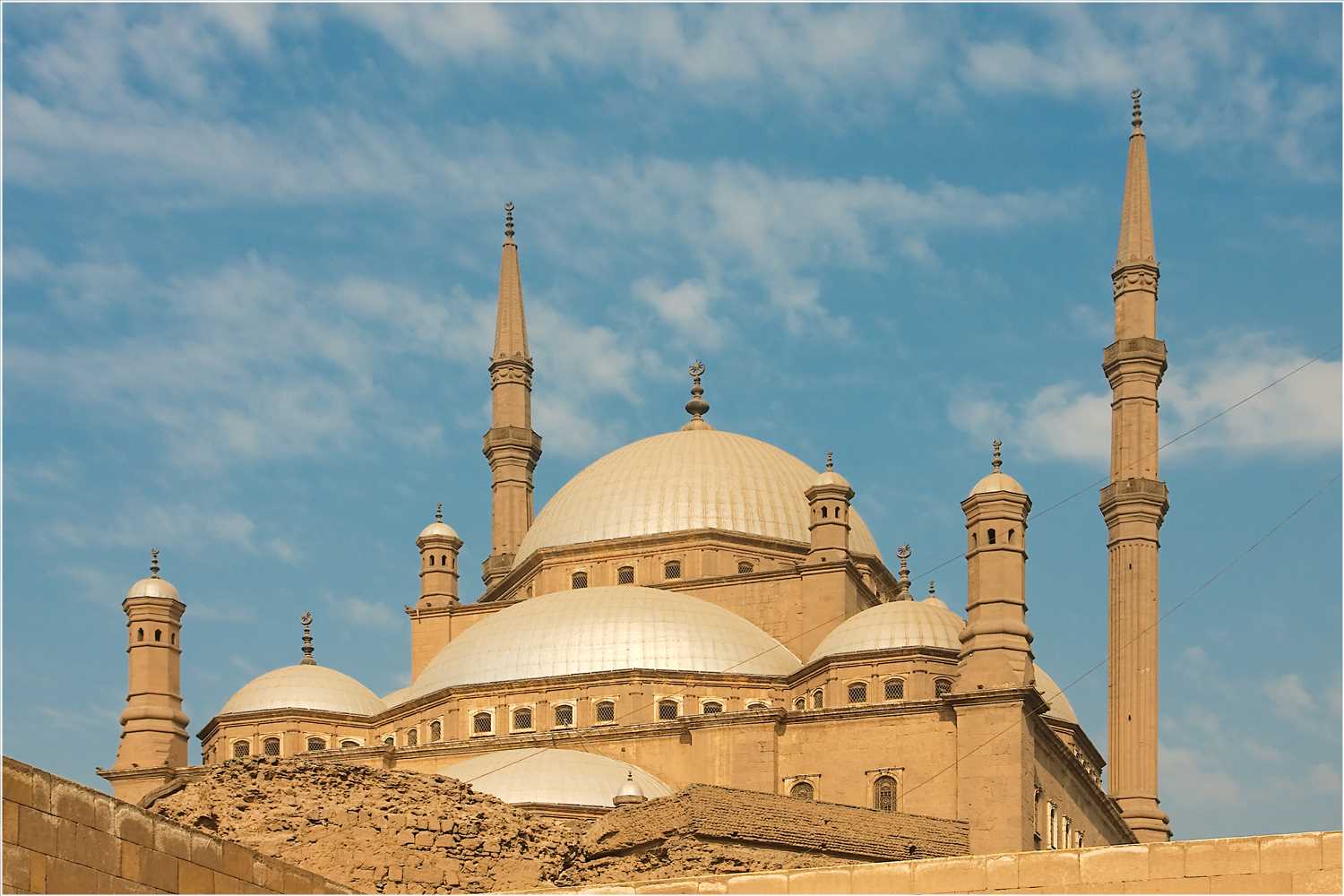 Nach einer Explosion im Pulverlager der Zitadelle von Kairo im Jahre 1824 wurden einige zerstörte Gebäudeteile nicht mehr wieder aufgebaut. Stattdessen ließ Muhammad Ali die nach ihm benannte Moschee in den Jahren 1824 bis 1884 im osmanischen Stil mit barocken Elementen errichten.