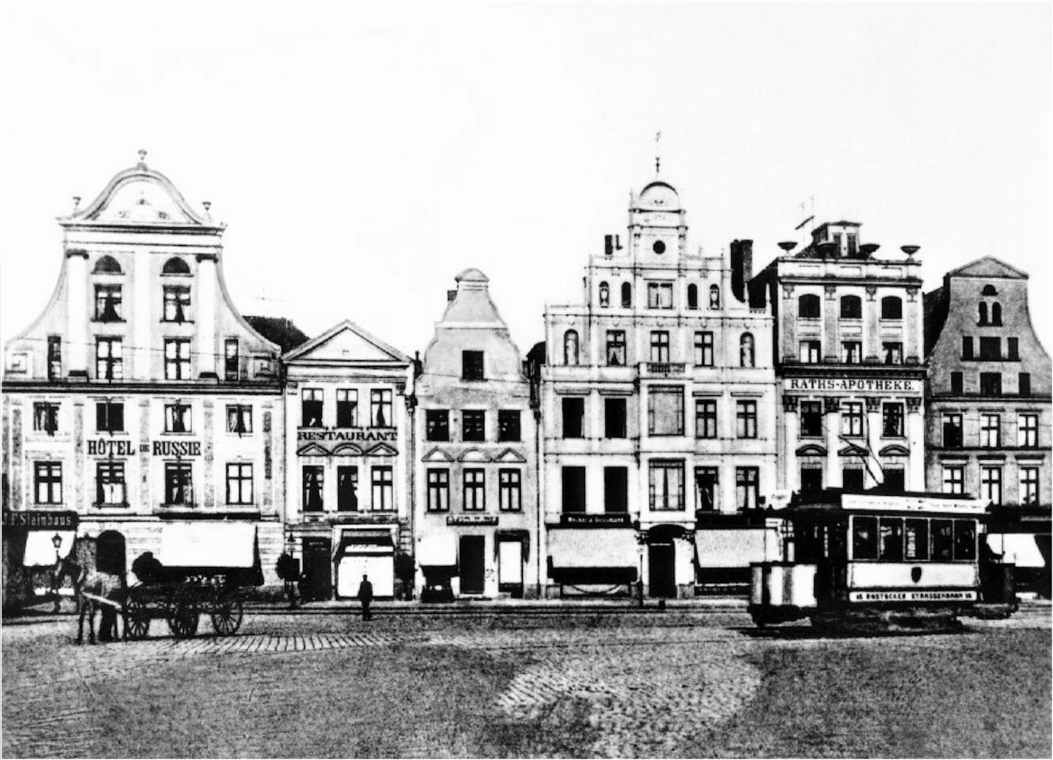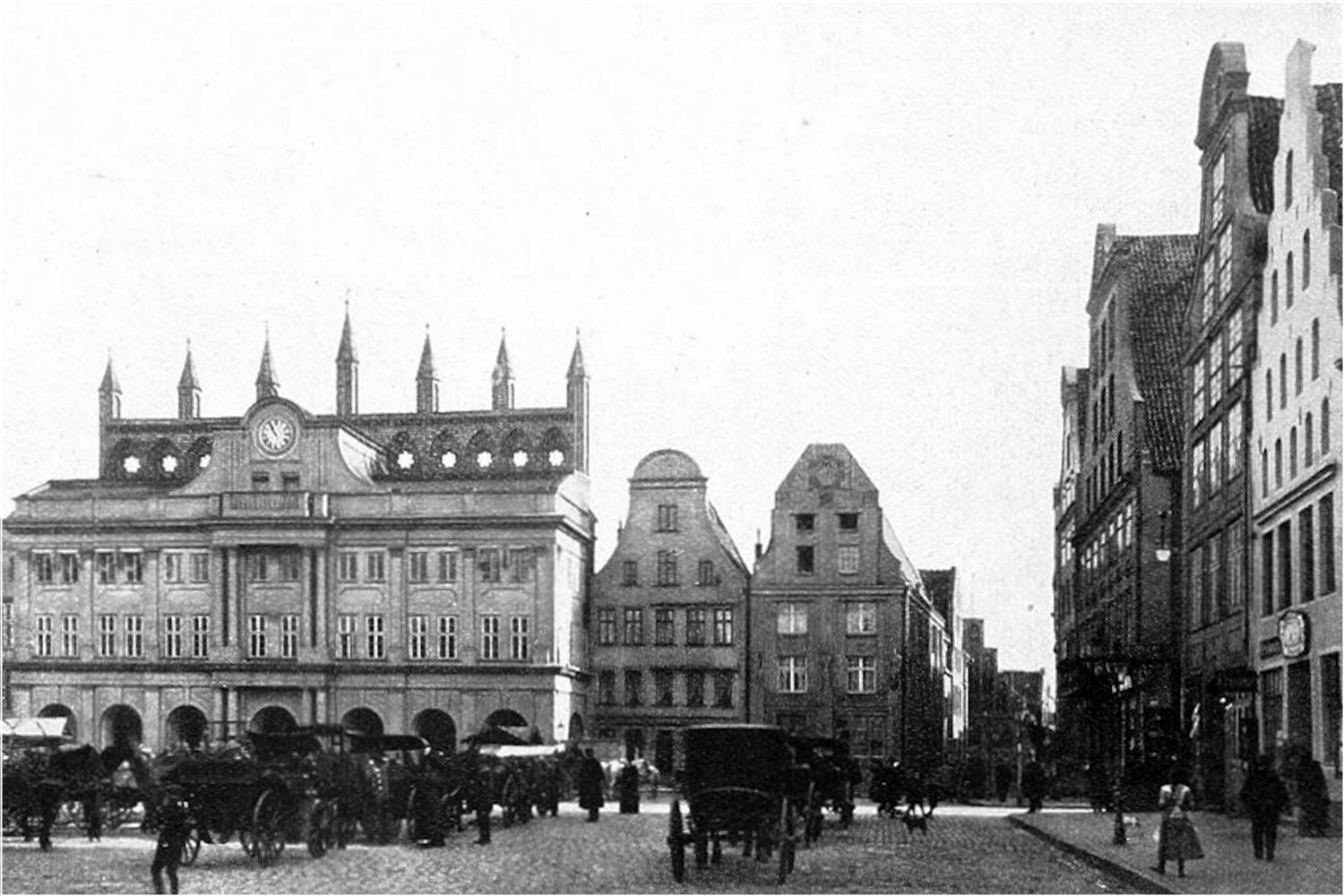 Auf dem Neuen Markt steht das historische Rathaus. Es ist der älteste erhaltene Profanbau der Stadt und gilt als einer der bedeutendsten der Backsteingotik im Ostseeraum.