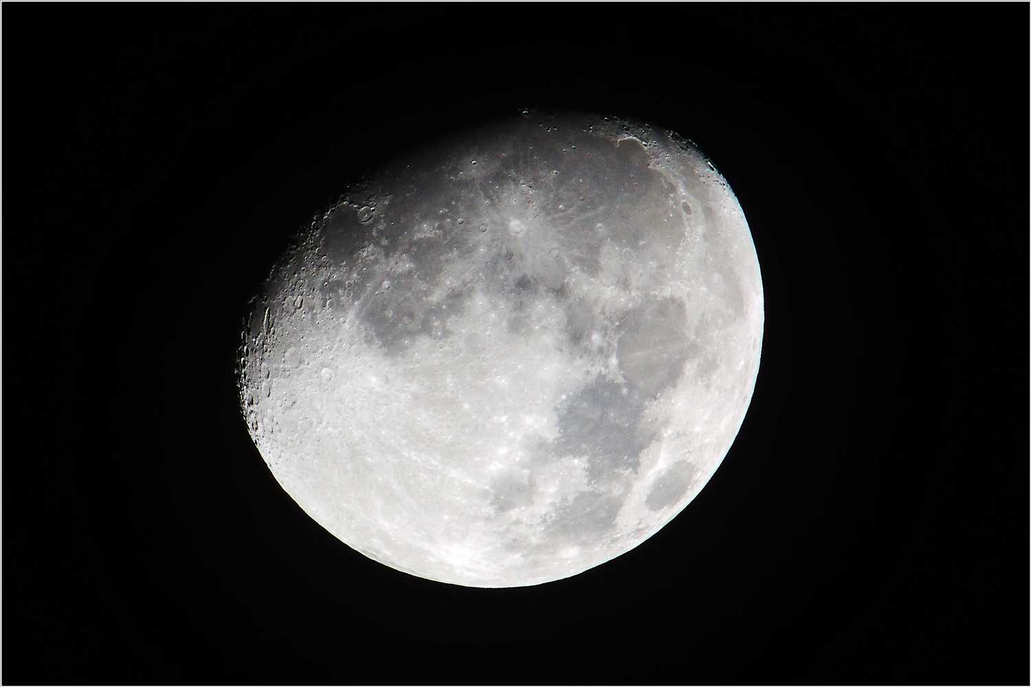 Schon ab einer Brennweite von 300 mm lassen sich recht gute Mondaufnahmen realisieren. Während ein voller Mond recht platt wirkt, zeichnen sich in der Mondphase gut die Krater an den Randbereichen ab, auch am Tage.