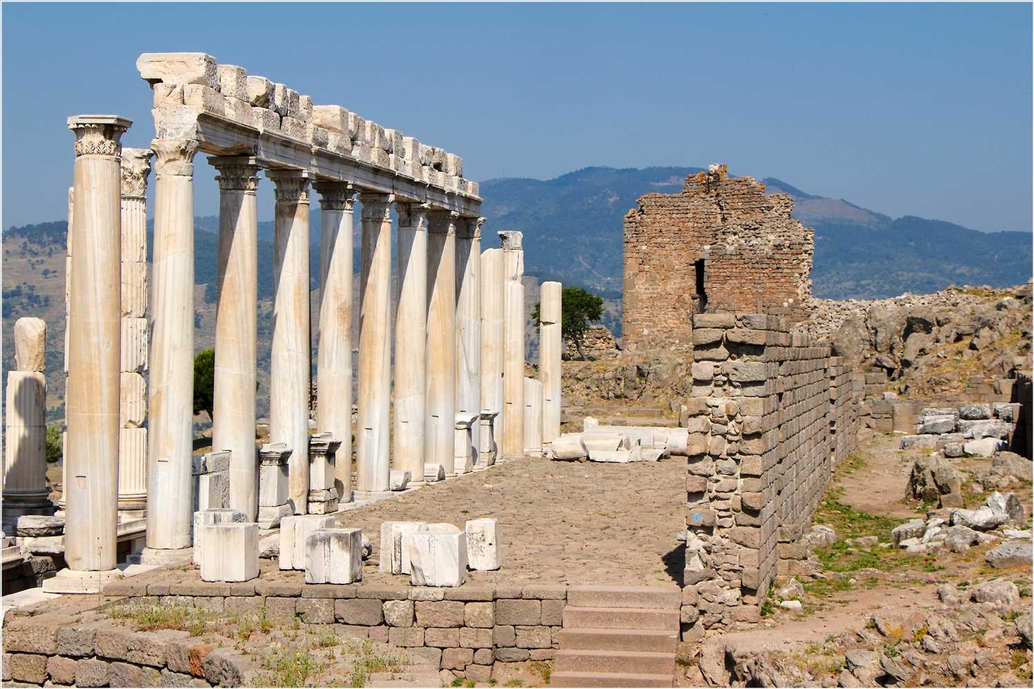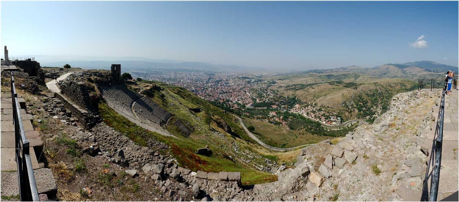 Pergamon war eine antike griechische Stadt nahe der Westküste Kleinasiens in der heutigen Türkei. Sie lag am nördlichen Rand einer Ebene, die von dem Fluss Kaïkos (dem heutigen Bakirçay) gebildet wurde. Die Bebauung erhebt sich zu Füßen, an den Hängen und auf der Hochfläche der Akropolis, deren Kern aus einem etwa 335 Meter hohen, tafelbergförmigen Massiv aus Andesitgestein besteht. Der Burgberg fällt nach Norden, Osten und Westen sehr steil ab, während die Südseite über drei natürliche Absätze einen flacheren Übergang zur Ebene bildet. Westlich durchfließt der Selinus (heute Bergamaçay) an der Akropolis vorbei die Stadt, im Osten fließt der Ketios (heute Kestelçay). Während des 3. und 2. Jahrhunderts v. Chr. war Pergamon Hauptstadt des Pergamenischen Reichs, das sich über große Teile des westlichen Kleinasiens erstreckte. Unter der kunstsinnigen Dynastie der Attaliden, die bestrebt war, ein neues Athen zu schaffen, wurde die Stadt zu einem der bedeutendsten Kulturzentren des Hellenismus. Namensgebend war die Stadt für das Pergament, das einer bereits antiken Legende zufolge dort erfunden wurde. Der heutige türkische Name der Stadt ist Bergama. Pergamon liegt etwa 80 km nördlich von Izmir (Smyrna).
